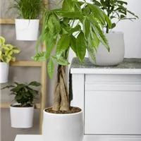 Dass die Glückskastanie zu den beliebtesten Zimmerpflanzen zählt ist kein Wunder. Die großen, knallgrünen Blätter und der hübsch geflochtene Stamm machen in jedem Ambiente etwas her.