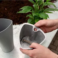 Bauen Sie Ihren Blumentopf mit Wasserspeicher nach Anleitung zusammen. Sollten die Abzugslöcher zu groß sein, so dass das Granulat durchfallen kann, legen Sie einfach ein paar Tonscherben darüber. Füllen Sie eine Schicht des Tongranulats ein.