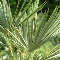 Doch viele Pflanzen mit dem Talent zur Gartenarchitektur brauchen keine exotischen Blüten, um starke Akzente zu setzen. Im Reich der Palmen finden sich viele Beispiele. Die Hanfpalme mit ihren fulminanten Fächerwedeln macht sich beispielsweise gut als Highlight zwischen Gräsern. Ihre schlichte Eleganz passt prima in einen Steppengarten. Unter den Farnen findet sich von klein bis groß und von zarten bis lederartigen Wedeln alles, was man braucht, um eine urtümliche Pflanze als Knalleffekt ins Spiel zu bringen. Disteln sind ausdrucksstarke Pflanzen, die als Ordnung schaffender Kontrapunkt in einem Beet gut zur Geltung kommen. Die Canna mit ihrem rot-grünen Blattwerk bringt leidenschaftliche Dramatik mit. Stolz darf sie den Mittelpunkt eines Gruppenbeetes einnehmen. Auch andere Pflanzen, die mit einfacher, aber überwältigender Struktur überzeugen, sind für einen Gruppenauftritt geeignet. Dazu zählt vor allem der immergrüne Bambus, der nicht nur als Sichtschutz dienen muss. Er kann gut eine Leitfunktion übernehmen. Ob er sich gemeinsam mit Gräsern im Wind wiegt oder als Hintergrund zu einem Blattschmuckbeet dient, er nimmt immer eine profilierende Rolle ein.