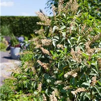 Kirschlorbeer ist bekannt. Es gibt kaum einen Garten, in dem die beliebte Heckenpflanze nicht wächst. Kein Wunder, denn Kirschlorbeer entwickelt sich mit der Zeit zu einer ansehnlichen und blickdichten Hecke. Aber der uns allseits bekannte Kirschlorbeer hat einen äußerst hübschen und pflegeleichten Bruder: den portugiesischen Kirschlorbeer. Und der ist unverkennbar: mit seinen kleinen und filigranen Blättern tritt der portugiesische Kirschlorbeer aus dem Schatten seines Bruders und überzeugt mit seiner Ähnlichkeit zum klassischen Lorbeer. Wem normaler Lorbeer also zu anstrengend ist, hat mit einem portugiesischen Kirschlorbeer das pflegeleichte Pendant gefunden.