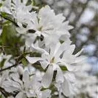 Die Sternmagnolie (Magnolia stellata) ist ein Strauch, der weiße, sternförmige Blüten mit einem angenehmen Duft hervorbringt. Sie erscheinen von März bis April. Ihre Rinde ist grau, glatt.