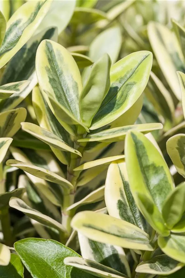 Die Strauchveronika (Hebe x andersonii) ist eine buschige Gartenpflanze, die violette, lilafarbene, rosafarbene, weiße, lippenförmige, in Ähren angeordnete Blüten hervorbringt. Sie erscheinen von August bis September. An einem sonnigen bis halbschattigen Standort mit durchlässigem, nährstoffreichem Boden erreicht sie gewöhnlich eine Höhe von ca. 60 cm und wird ca. 50 cm breit.